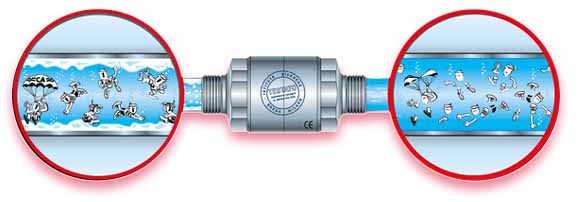 En ambos casos elimina las colonias bacterianas que se alojan en los depósitos calcáreos, así como la corrosión en las tuberías.